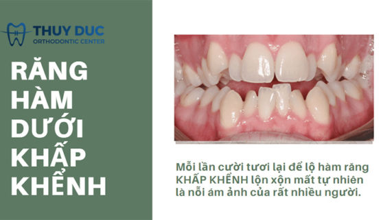 Răng khấp khểnh là tình trạng tương đối phổ biến khi các răng nhất là nhóm răng cửa mọc không đều, sai vị trí và lệch hướng, răng mọc lệch vào trong hoặc ra ngoài chen chúc vào nhau. Răng khấp khểnh không chỉ làm mất thẩm mỹ mà còn gây sai lệch khớp cắn, khó vệ sinh răng miệng vì răng có nhiều kẽ hở gây sâu răng, viêm lợi, viêm nha chu. Vì vậy, cần khắc phục răng khấp khểnh càng sớm càng tốt.